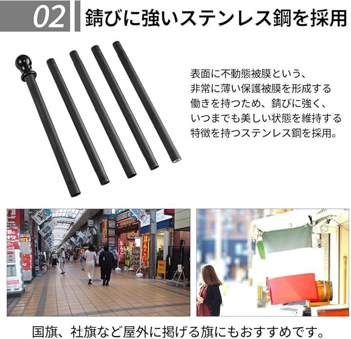 「風に強く、絡まりにくいデザイン」国旗、社旗、応援旗など、様々な旗を飾るのに最適な旗用ポールです。