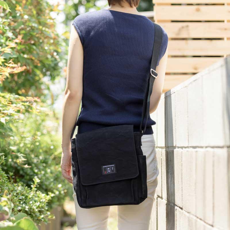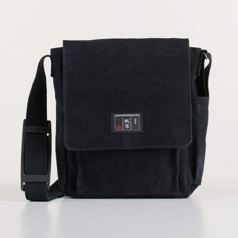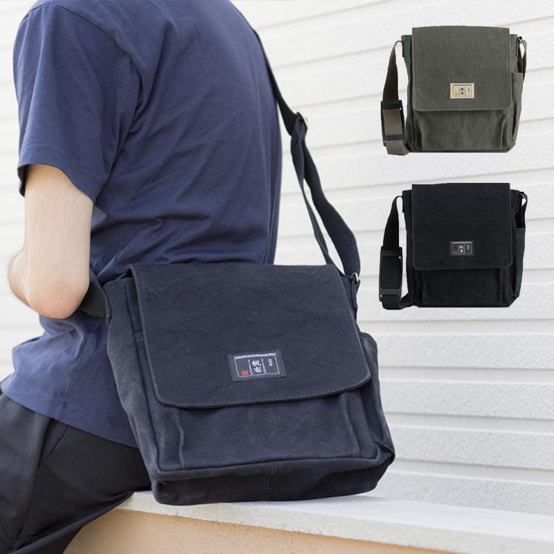 かぶせはマジックテープで止めてあり開閉もスムーズ。「帆布」のタグが日本らしさ感じさせ、大人のこだわりを演出します。サイドポケットにはペン等はもとより夏場の扇子なども和風にまとまり、粋に持てますよ。背面や内側にもポケットがあり、収納も充実しています。
