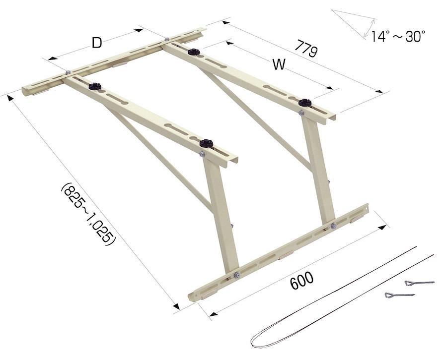 クーラーキヤッチャー 傾斜屋根直角置用・角度寸法目盛・根角ボルト・絶縁ナット・たたけるヒートン、針金付属