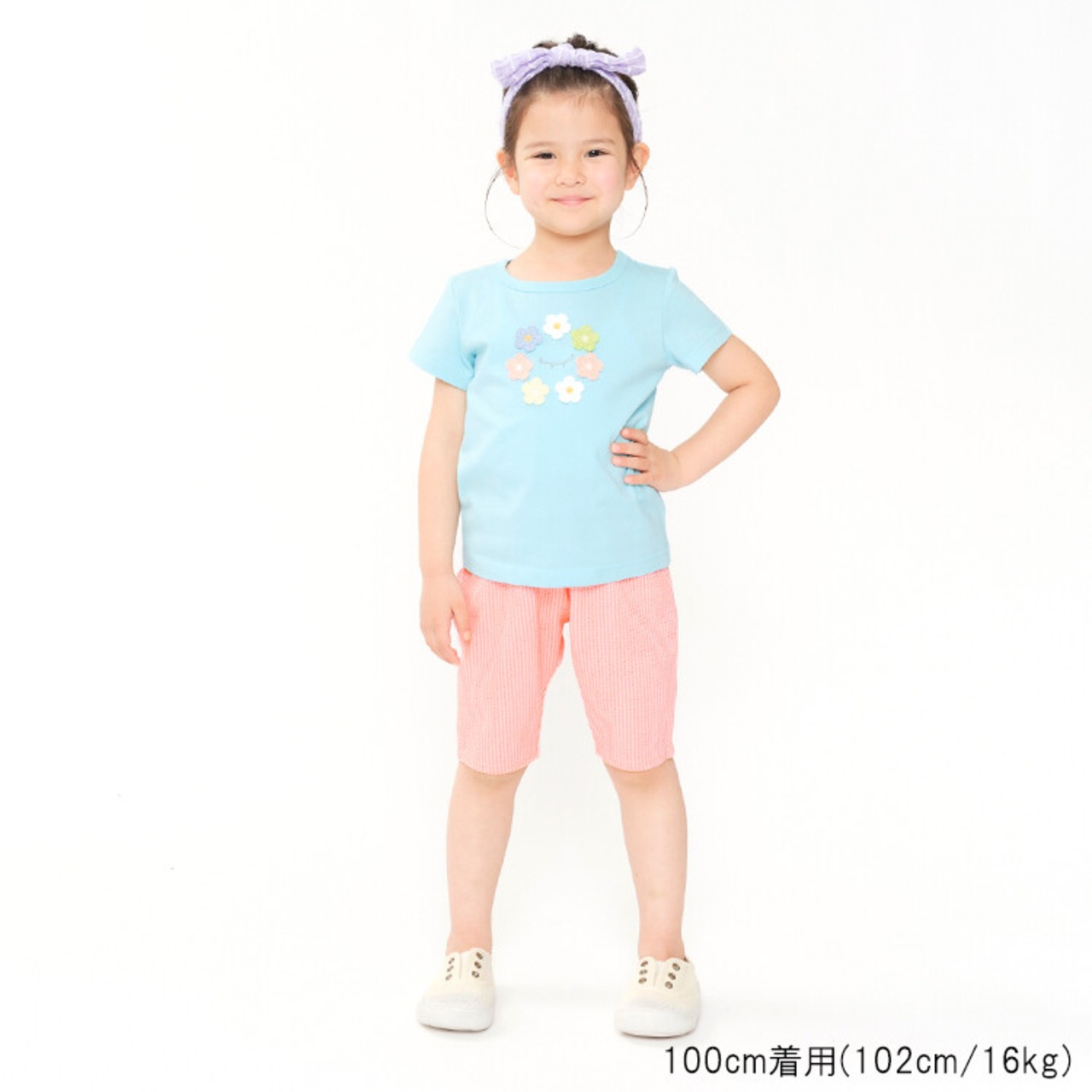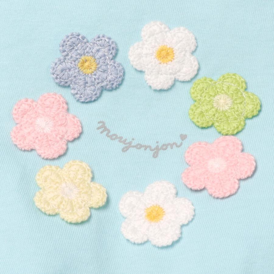 ◆ブランドメッセージ◆◆moujonjonかぎ針編みのお花のモチーフ付き。夏らしいカラーのクリームとサックスの半袖Tシャツ。シンプルなデザインで通園通学にもオススメ!◆サイズ cm◆100、110、120、130、140参考寸法着丈:38、41、44、47、50胸囲:62、66、70、74、78袖丈:10.5、11、12、13、14背肩幅:26.5、28、29.5、31、32.5◆80、90サイズお取り寄せできます。参考寸法 80cm 90cm着丈 32cm 34.5cm胸囲 56cm 58cm袖丈 9cm 9.5cm背肩幅 24cm 25cm