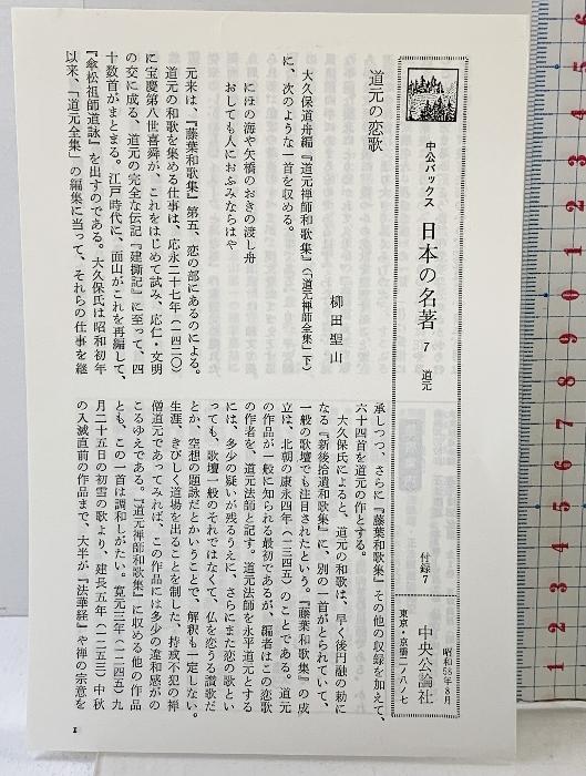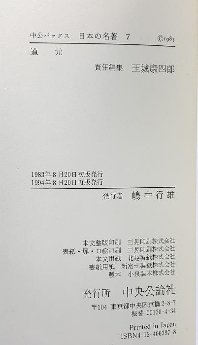 Japanese Masterpieces 7 Dogen (Chuko Backs) Chuokoron-Shinsha Koshiro Tamaki