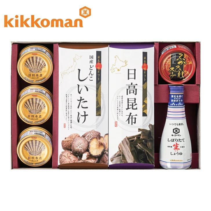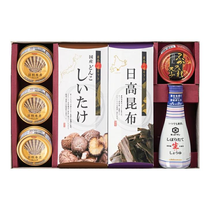国産椎茸、日高昆布各25g、ふかひれスープ缶85g、キッコーマンしぼりたて生しょうゆ200ml×各1、貝柱水煮(ほぐしみ)35g×3