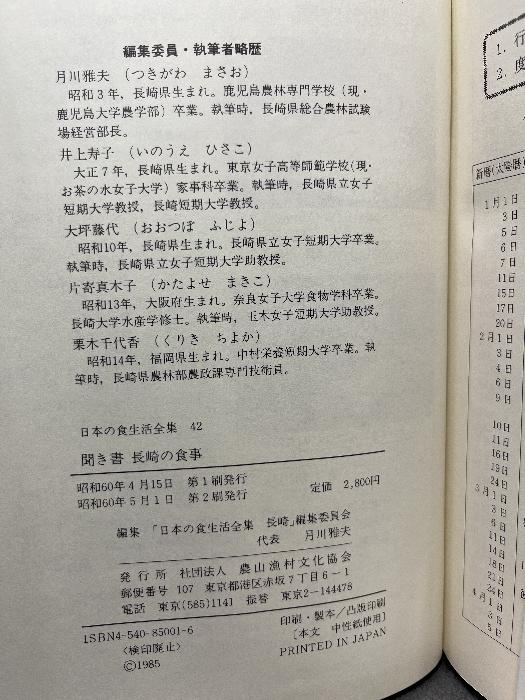 g01-260131002002015-000日本の食生活全集 (42)聞き書 長崎の食事 農山漁村文化協会 長崎の食事編集委員会海岸線が全国で一番長い県・長崎。離島が群れなす長崎。中国と南蛮の影響。さつまいもの料理が一番発達している長崎。さまざまな長崎のさまざまな料理の全貌を紹介する。9784540850011<%% SHIPPING %%>三方小口にホコリシミ・斑点があります。本は、おおむね良好な状態です。※注意事項※■商品・状態はコンディションガイドラインに基づき、判断・出品されております。■付録等の付属品がある商品の場合、記載されていない物は『付属なし』とご理解下さい。