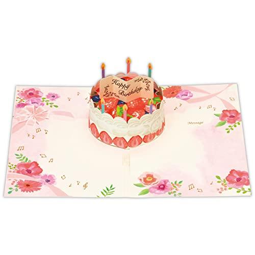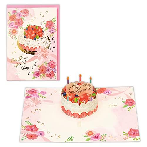 通常1-5営業日で発送:カードを開くとベリーがたっぷりの華やかなケーキがポップアップする、二つ折りのオルゴールカード。どなたにも贈りやすい優雅で上品なデザインです。