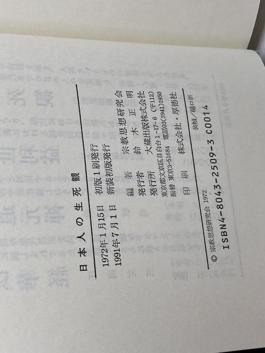 商品名:日本人の生死観 新装版 大蔵出版 宗教思想研究会