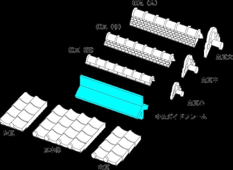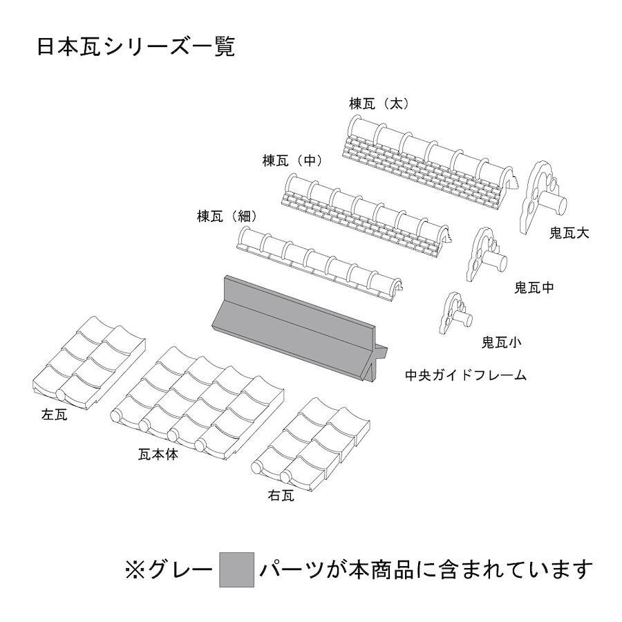 Cut the central guide frame, install the onigawara, and install a ridge tile that matches the length inside the onigawara.