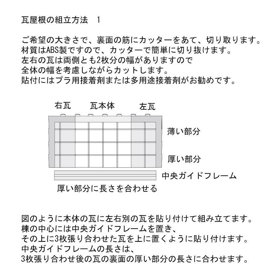 Assemble the roof tiles by attaching separate left and right tiles to the main body as shown in