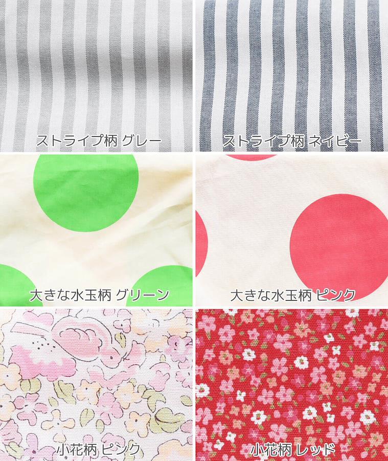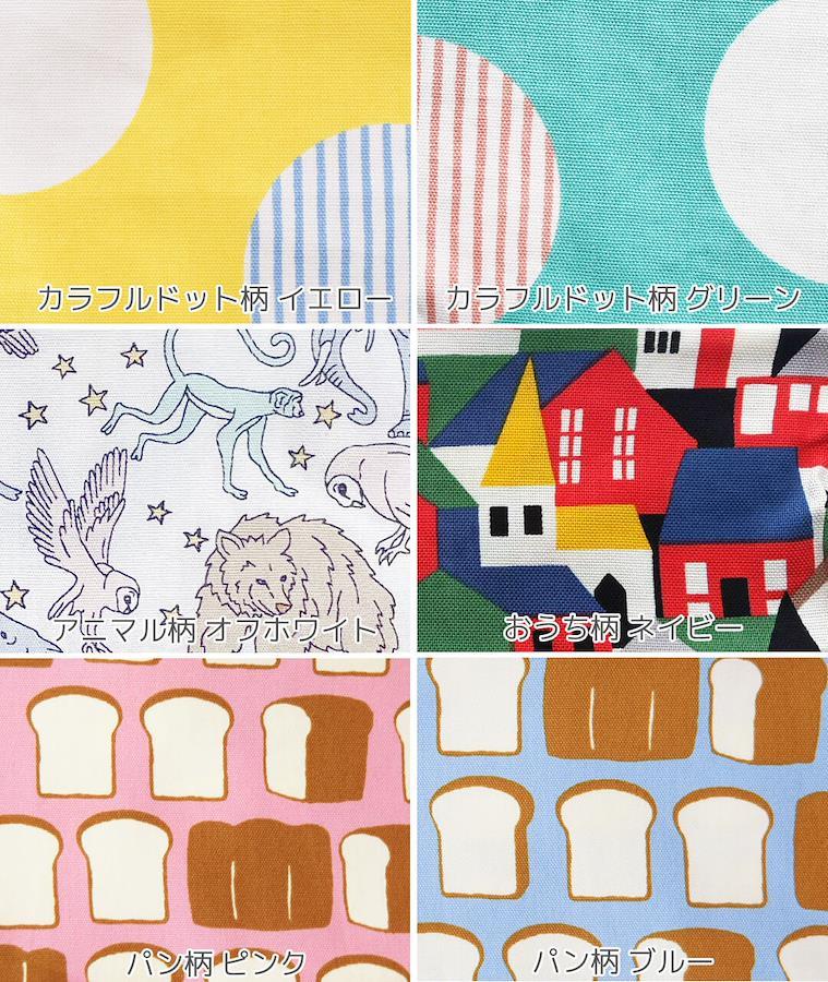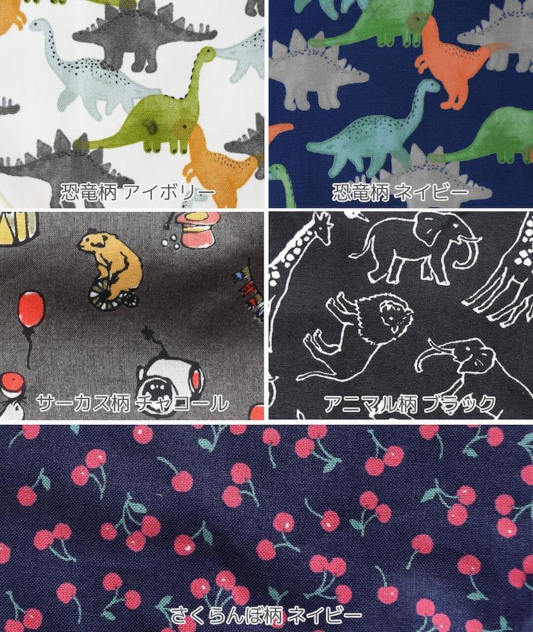 カラー(柄) | ストライプ柄グレー / ストライプ柄ネイビー / 大きな水玉柄グリーン / 大きな水玉柄ピンク / 小花柄ピンク / 小花柄レッド / カラフルドット柄イエロー / カラフルドット柄グリーン / アニマル柄オフホワイト / おうち柄ネイビー / パン柄ピンク / パン柄ブルー / 恐竜柄アイボリー / 恐竜柄ネイビー / サーカス柄チャコール / アニマル柄ブラック / さくらんぼ柄ネイビー