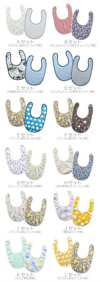 カラー(柄) | Aセット(おもちゃ柄&ストライプ柄) / Bセット(ギンガムチェック柄&チューリップ柄) / Cセット(恐竜柄&ギンガムチェック柄) / Dセット(ギンガムチェック柄&ストライプ柄) / Eセット(アニマル柄&ぞうさん柄) / Fセット(アニマル柄&サーカス柄) / Gセット(チューリップ柄&木の実柄) / Hセット(木の実柄&チューリップ柄) / Iセット(アニマル柄&アニマル柄) / Jセット(雲柄&バード柄) / Kセット(りんご柄&雲柄) / Lセット(ぞうさん柄&アニマル柄) / Mセット(りんご柄&チューリップ柄) / Nセット(チューリップ柄&木の実柄) / Oセット(アニマル柄(&ドット柄) / Pセット(りんご柄&りんご柄) / Qセット(ギンガムチェック柄&アニマル柄) / Rセット(アニマル柄&大きな水玉柄) / Sセット(チューリップ柄&アニマル柄) / Tセット(ギンガムチェック柄&大きな水玉柄) / Uセット(おもちゃ柄&いちご柄) / Vセット(チューリップ柄&木の実柄) / Wセット(小花柄&チューリップ柄) / Xセット(チューリップ柄&大きな水玉柄)