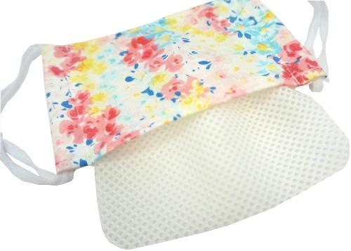 (特徴など) | 上側がポケットになっています。除菌シート、小型保冷剤などを入れることができます。子供用。内側2重ガーゼと可愛い生地を縫い合わせた布マスクです。