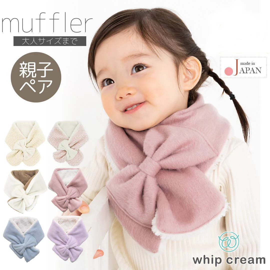 可愛いカラーに大きなリボン、女の子の大好きが詰まったマフラーです。