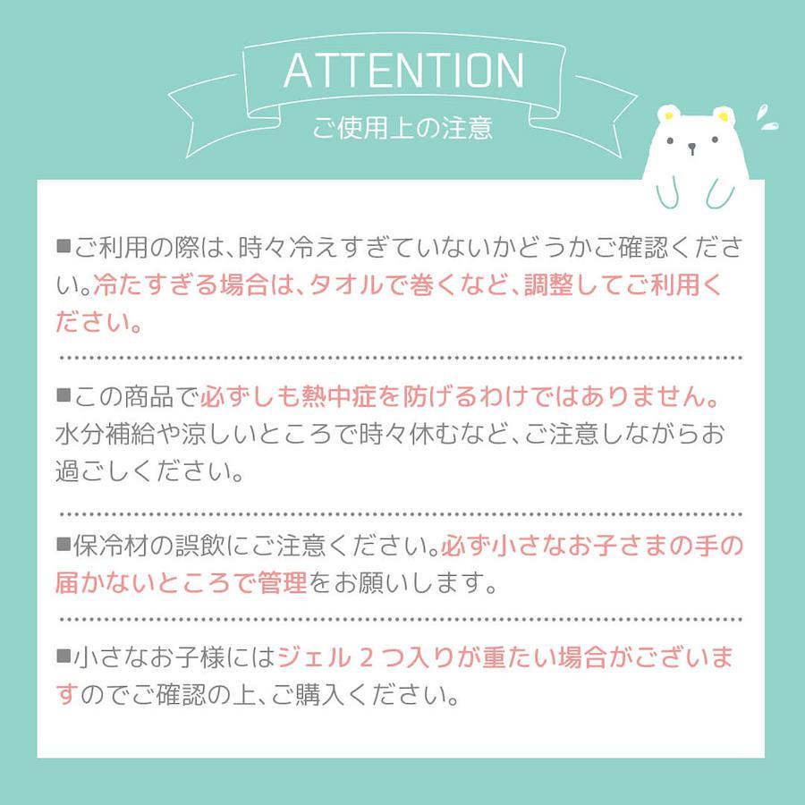 ・保冷ジェルの誤飲にご注意ください。必ずお子さまの手の届かないところで管理をお願いします。