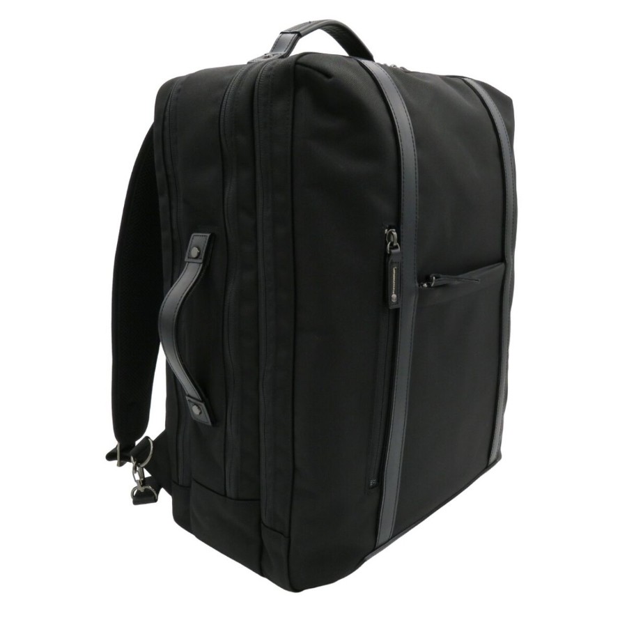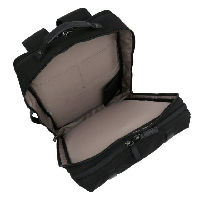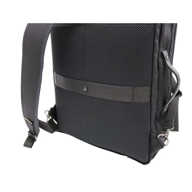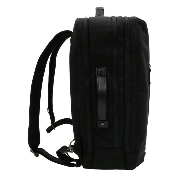 ●サイズ・容量大きめでB4サイズ対応のビジネスリュック。●パソコン・書類など荷物多めの方へおすすめ。●3層構造のため仕分け収納がしやすいです。パソコン、衣類(宿泊が伴うビジネスシーンの場合)、書類などを部屋ごとに分けて収納すると便利。●1泊の出張にも対応可能。背面部分にはキャリーバー通しがあるため、出張などスーツケースと一緒に使用する際はバッグを安定させて移動することができます。●リュックベルトは厚み・クッション性のある仕様かつ幅広サイズなので、肩に食い込まずかつ負担がかかりにくいようになっております。●本体生地には高密度ナイロン「エビータ」を使用。●質感高めでスタイリッシュなデザインです。