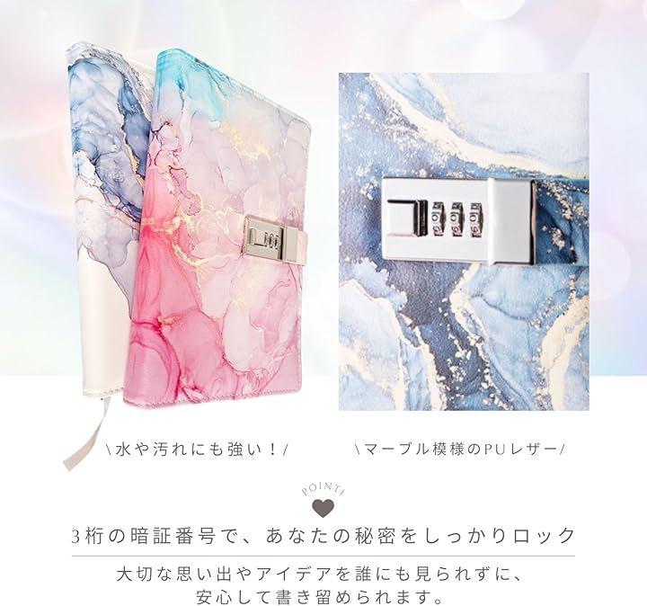 「秘密を守る大人のロック日記」 大人の女性にふさわしい上品なマーブル模様とゴールドアクセント。