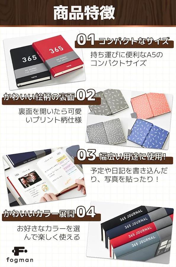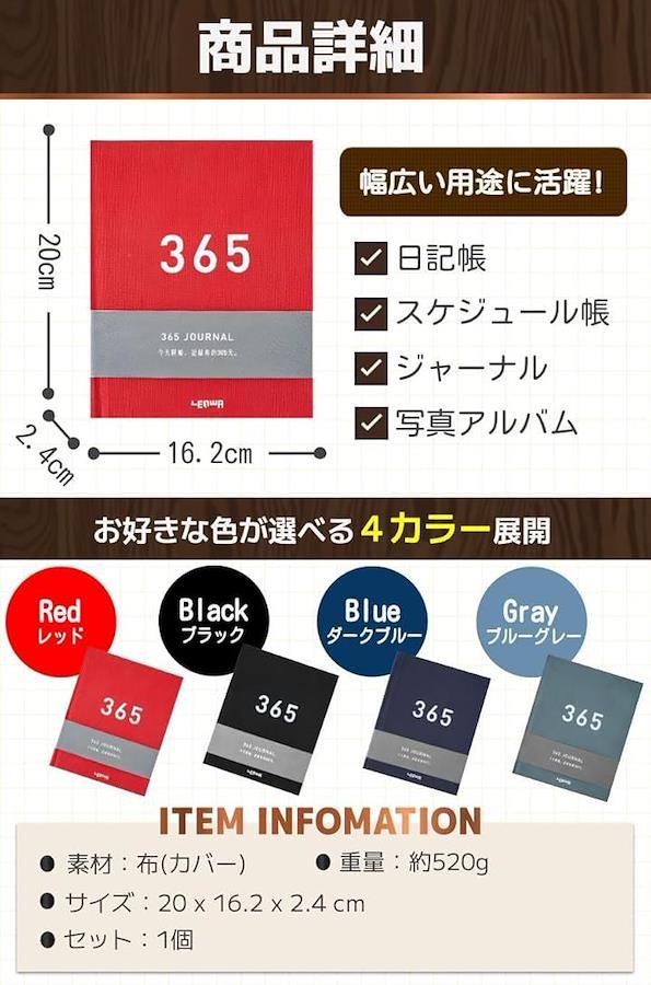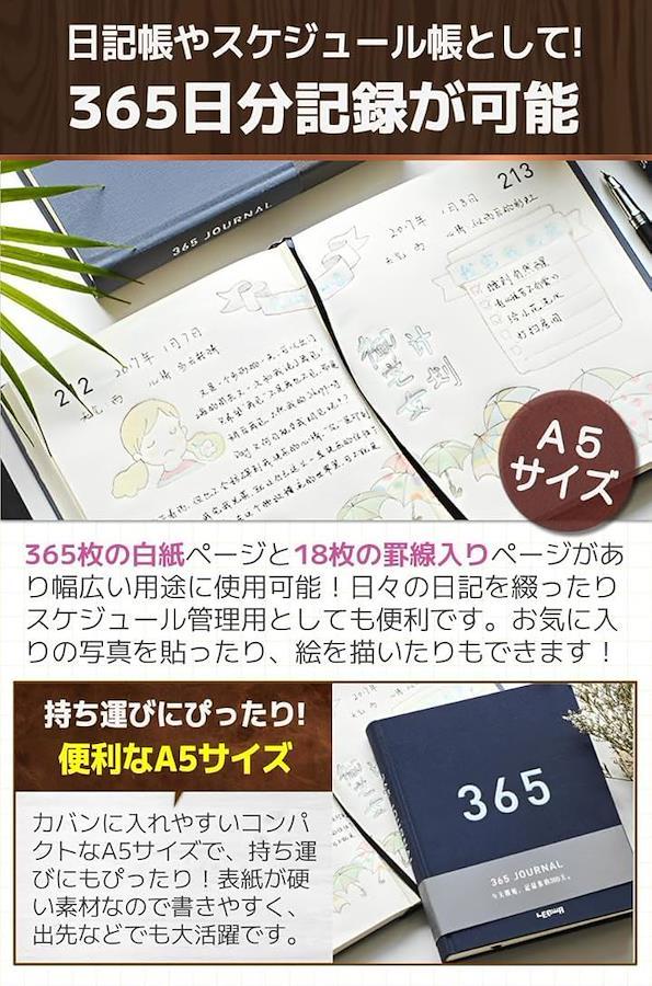 「365日分記録が可能」365枚の白紙ページと18枚の罫線入りページがあり幅広い用途に使用可能。日々の日記を綴ったりスケジュール管理用としても便利です。