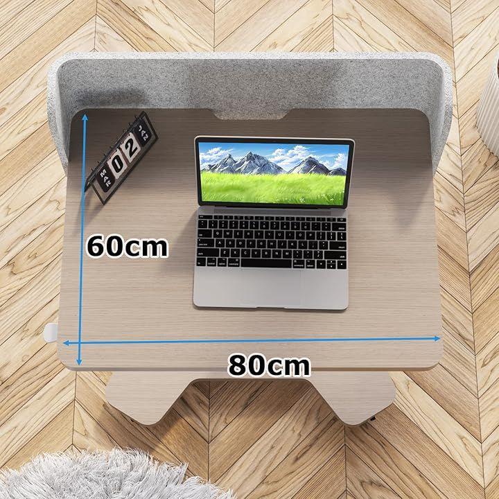 幅80CMx奥行60CMのコンパクトなサイズながら、空圧式の昇降機能により高さを自由に調節できます。