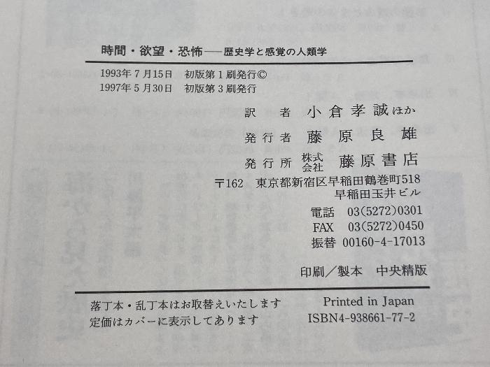 商品名:時間・欲望・恐怖: 歴史学と感覚の人類学 藤原書店 アラン コルバン