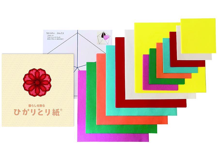 ● 日本製 透かし折り紙「ひかりとり紙」のお得な詰め合わせセットです。スターターキットとして、お友達へのプチギフトとして、透かし折り紙ワークショップの材料・テキストとしてオススメ! ● 輸入品のトランスパレントペーパーとは全く異なり、シャリ感やコシはありません。薄く柔らかい折り紙です。ご注意ください。 ● 光を透かすことで、万華鏡のような折模様を楽しめる折り紙です。おりがみ版サンキャッチャーです。昼間は自然光に、夜は照明に透かせることにより楽しめます。 ● 1枚のひかりとり紙で1つのパーツを折ります。数枚のパーツを貼り合わせることで1つの作品が出来上がります。 ● 折り目を糊で留めながらパーツを折ります。出来上がったパーツも糊で貼り合わせます。スティックのりやテープのりを使ってください。 ● 折り紙好きのお子さん6歳くらいから使えます。最初は糊づけが難しいので、大人と一緒に楽しむことをおすすめします。 ※※ひかりとり紙セット商品詳細※※ 赤色・オレンジ色・黄色・ピンク色・白・水色・緑色 ●150mm×150mm 56枚入(7色 各8枚) ●75mm×75mm 112枚入(7色 各16枚) ●ブックレット(折り図6種+簡単アレンジ集) ●ぶんどき(5角形貼り合わせ用)