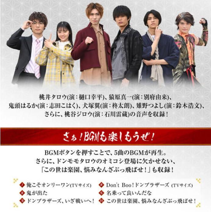 通常1-5営業日で発送≪新品・未開封品≫:『暴太郎戦隊ドンブラザーズ』より 変身アイテム「ドンブラスター」がメモリアル仕様で登場 ~DX比約125%、劇中台詞やBGMも収録!~ 『暴太郎戦隊ドンブラザーズ』より、劇中に登場する変身アイテム「ドンブラスター」をメモリアル仕様で発売いたします。 本体は、劇中のサイズ感をイメージしDX版から約125%サイズアップ。完全新規造形を行い、劇中のようなリアルな外観を実現しました。「ドンブラスター -MEMORIAL EDITION-」本体に、付属のアバタロウギアをセット。ギアを回すとドンブラザーズへの変身音が発動します。 アバタロウギアは、ドンモモタロウ・サルブラザー・オニシスター・イヌブラザー・キジブラザーの5種とドンロボタロウのロボタロウギアが付属します。 本体には、台詞ボタン・BGMボタンを搭載。台詞ボタンを押すと、桃井タロウ(演:樋口幸平)・猿原真一(演:別府由来)・鬼頭はるか(演:志田こはく)・犬塚翼(演:柊太朗)・雉野つよし(演:鈴木浩文)・桃谷ジロウ(演:石川雷蔵)の音声を多数収録。BGMは、OP曲「俺こそオンリーワン(TVサイズ)」など全6曲が収録されています。 ※「ロボタロウギア キングオージャー」は、「ドンブラスター -MEMORIAL EDITION-」でのみ読み込めるギアとなります。 ※本商品は別売りのDXシリーズとは連動いたしません。ご了承ください。 ※本商品に付属するアバタロウギアは、「DXドンブラスター」「DX龍虎之戟(リュウコノゲキ)」「DX虎的盾鑼(タイガードラ)」との連動は保証しておりません。 ※本商品は付属のギア以外をセットした際の動作は保証しておりません。予めご了承ください。 ※本商品に「DXオミコシフェニックス」を装着することは出来ません。 ※本商品に付属するアバタロウギア5種、ロボタロウギア1種は、DXシリーズのアバタロウギアとロボタロウギアと同じ仕様のものです。