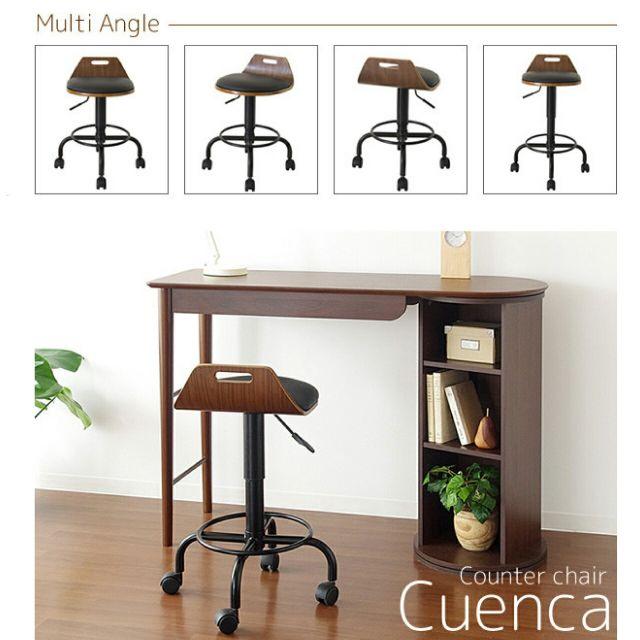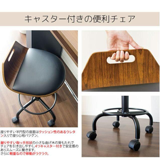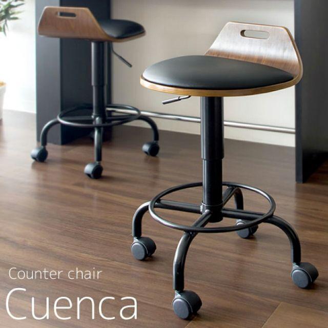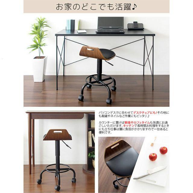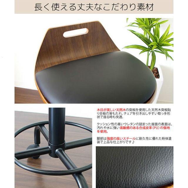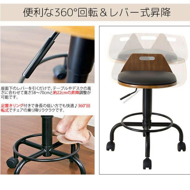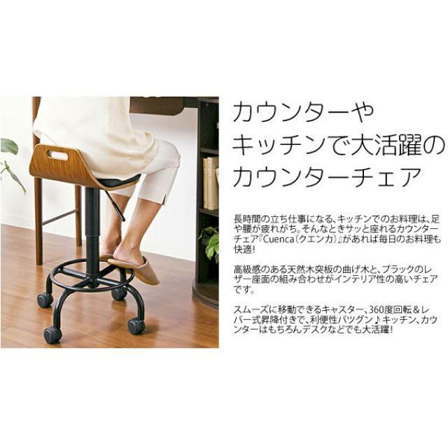 Bentwood Counter Chair KNC-J240, 47cm (W) x 49cm (D) x 58-70cm (H), Black, 360-degree swivel & lever-operated height adjustment, casters, high-quality natural wood, leather seat, lightweight.
