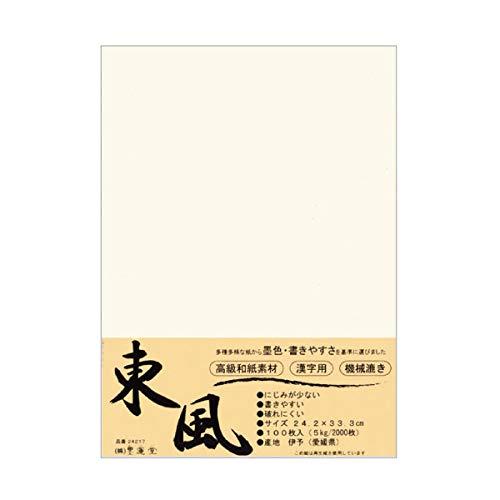 242×334mm習字用の半紙です。書きやすくするために、筆が滑らかに進むようにザラザラを押さえ、あまりにじまないタイプの半紙です。破れにくく、心おきなく練習できます。東風と松雲は同じ紙ですが、若干松雲のほうが厚手です。