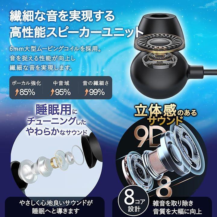 ・「 寝ホン / 睡眠用イヤホン / ASMRイヤホン」 イヤホンをしたまま寝てしまっても、尖った音で夜中に目が覚めにくい音質です。