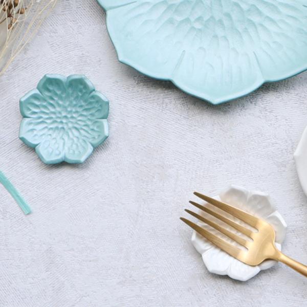 ────────────────────────少しパールがかかったような色味で絶妙な大人かわいいカラーのアイテムです。艶感を消したようなおしゃれな雰囲気。銘々皿はケーキ皿にピッタリなサイズ。豆皿はカトラリーレストや薬味入れにピッタリ。お花の形の全体にうっすらと彫があります。 ──────────────────────── 商品詳細 サイズ 約直径5.7×高さ1cm 容量 (満水時)約cc 材質・質感 磁器・少しザラザラ 備考 ・電子レンジ ×・食洗機 〇●こちらは豆皿1枚の価格です。※写真のカトラリーなどはつきません。※商品の特性上、わずかな色のムラが出る場合があります。※商品以外のものは撮影備品のため、含まれません。