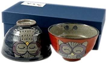 通常1-5営業日で発送:有田 波佐見焼 翔芳窯 錦フクロウ 組茶碗(夫婦茶碗) 20615