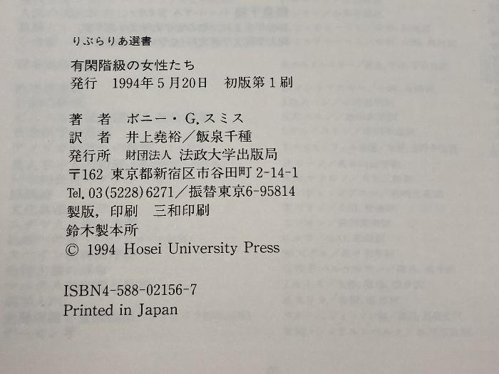 商品名:有閑階級の女性たち: フランスブルジョア女性の心象世界 (りぶらりあ選書) 法政大学出版局 ボニー・G. スミス