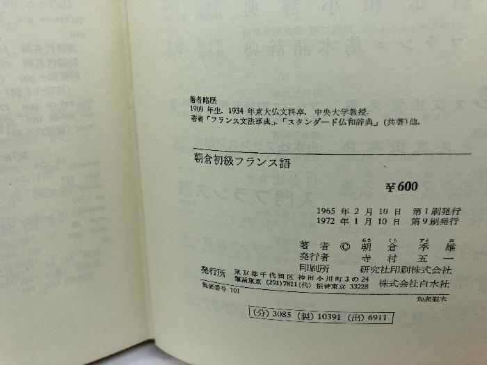 商品名:朝倉初級フランス語 朝倉季雄 白水社