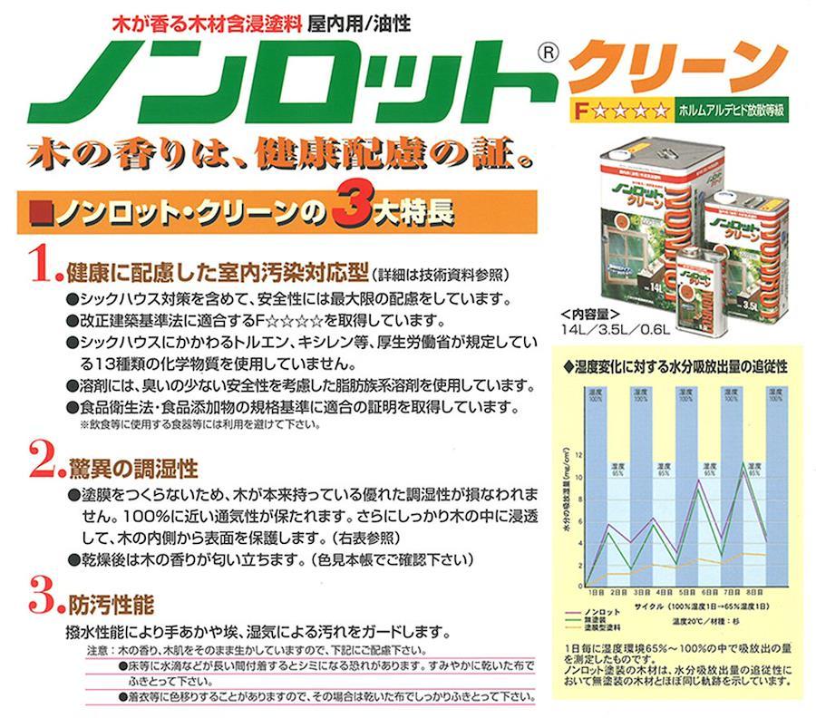 3営業日以内に発送≪新品未開封品≫:木が香る木材保護塗料 ノンロットクリーン(屋内用) クリアー 3.5L