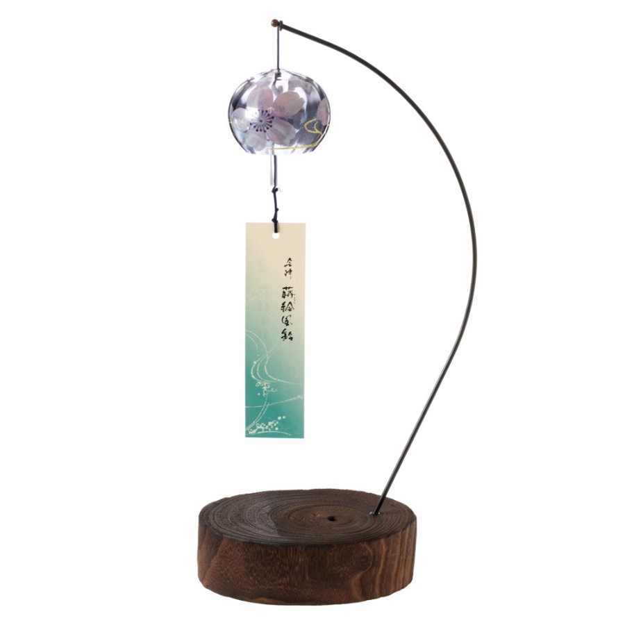 木之本吉亞曼風鈴+底座套裝,薄櫻系列,室內桌面裝飾,水晶玻璃,手工製作,日式風鈴,日本製造