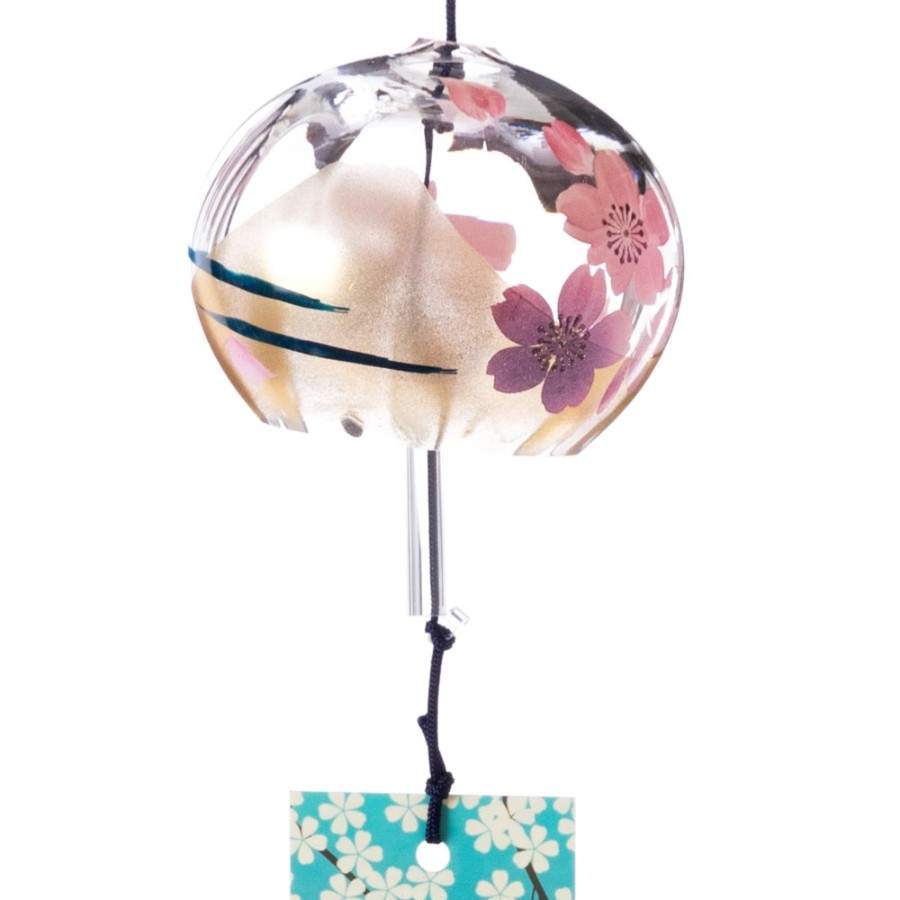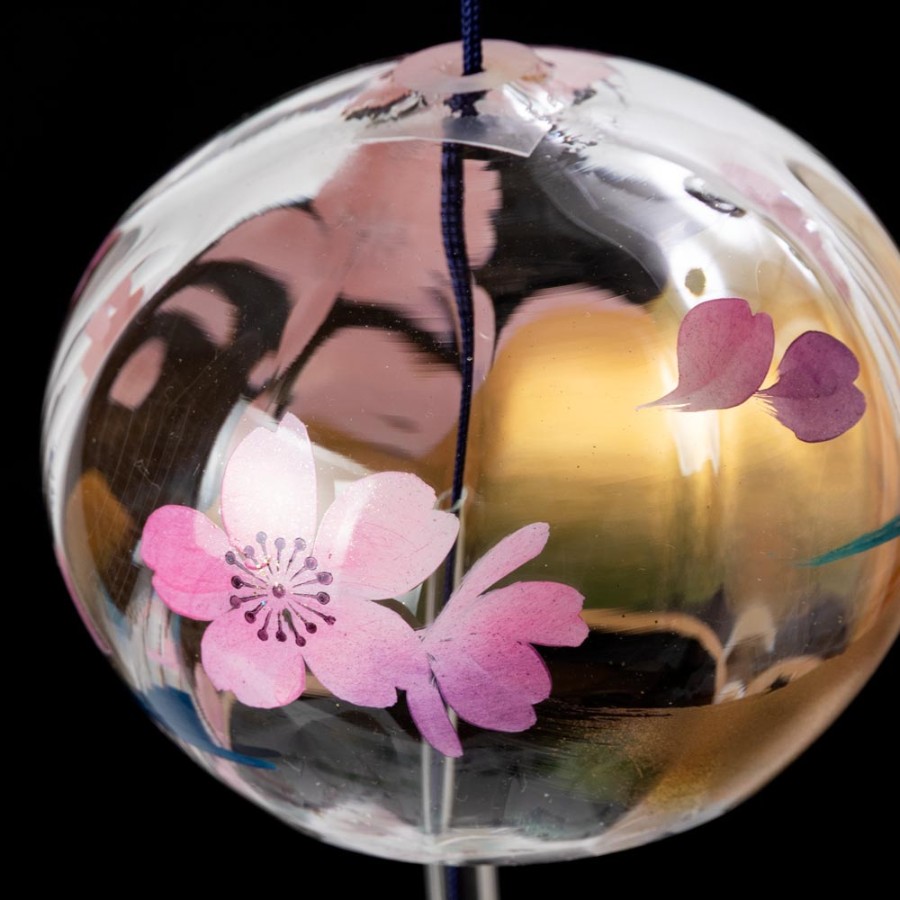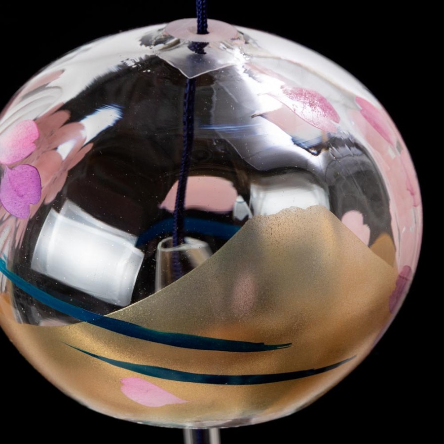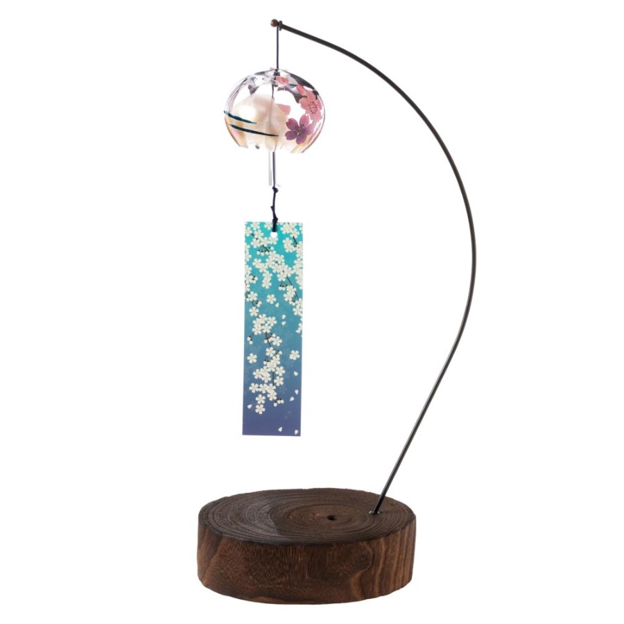 クリスタルガラスを使用した、ぬくもりのある透明感が特徴の風鈴に、その透明感を生かした柄を内側にさりげなく描いた、立体感のある柄のガラス風鈴。そこに、風鈴を吊るすスタンドをセットにしました。スタンドの台は桐材から作っていますので、木の暖かみが感じられる素朴な雰囲気が特徴です。軸は丈夫な鉄製で、安定して風鈴を吊るせます。