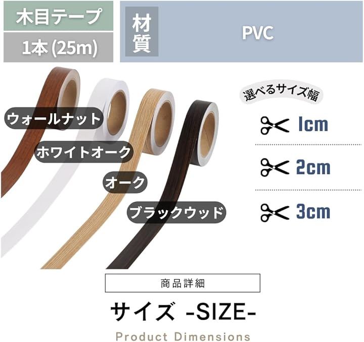 「商品内容」パッケージ内容: テープ1本(25m) サイズ(約): 幅1cm~3cm 主な材質: PVC *サイズ詳細は商品画像をご確認ください。