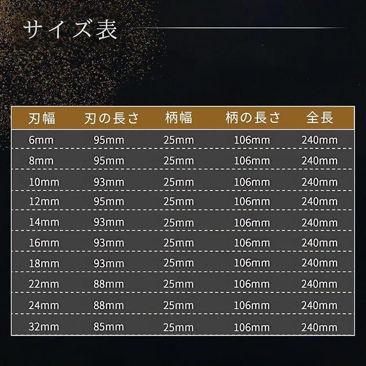 6mmから32mmまでのサイズが揃っており、仕上げや面取り、木彫りなど、あらゆる作業に対応できます。