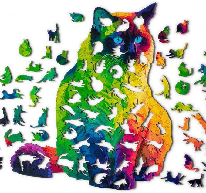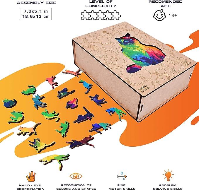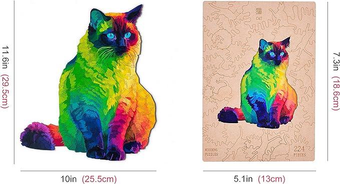 ■商品名木製のジグソーパズル、若者と大人への最高の贈り物、テトリビルディングブロック、教育的な形のおもちゃ不思議な猫、13.1 x 11.4インチ(34 x 28 cm)、224個