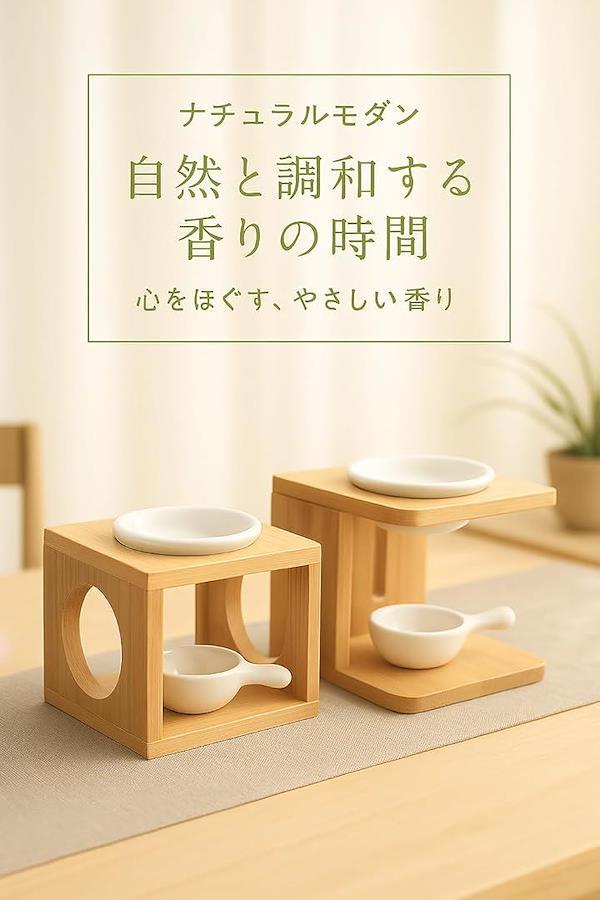 「香りと光で心ほぐれるひとときに」 キャンドルホルダーとアロマ容器が分かれたセパレート式のアロマポット。