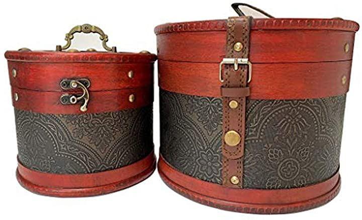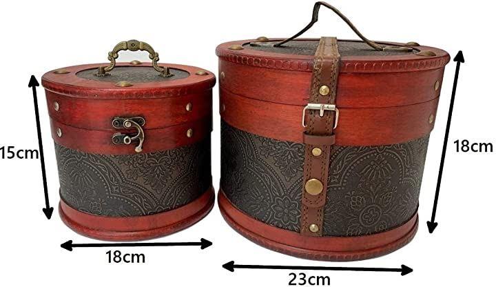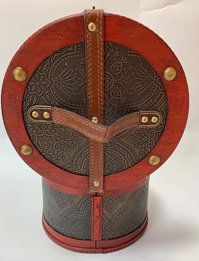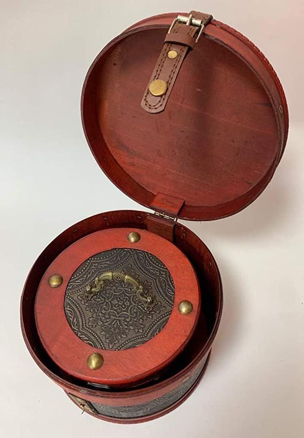 ・ご自宅に増えていくアクセサリーやメイクグッズ、小物等を収納できる木の風合いが素敵なアンティーク円形バニティボックスです。