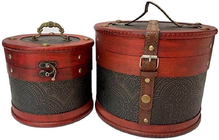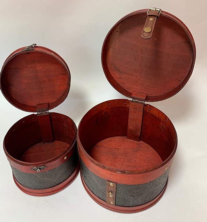 「アンティーク感あふれる木の風合いがとてもおしゃれな円形バニティ収納ボックス。。」