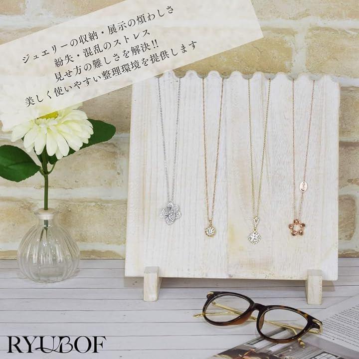 最大8本まで収納でき、背面にある2段階の高さ調節が可能なペグによって、ネックレスの長さやデザインに合わせてディスプレイのバランスを自由に調整可能です。
