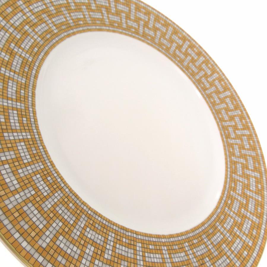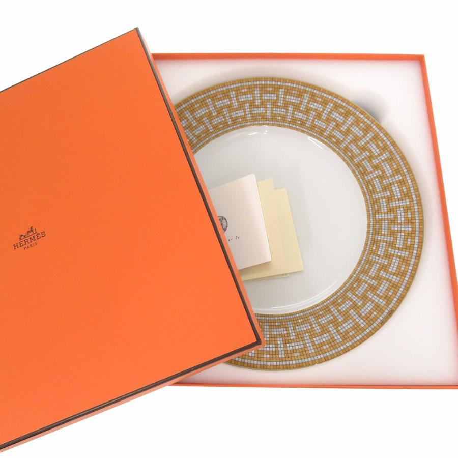 [管理番号]7F1013ZZ5T2[ブランド]エルメス(HERMES)[タイプ]シルクスクリーンプリント 幾何学模様[対象]レディース[カラー]オレンジ x ゴールド[モデル]モザイク 24 ディナープレート[生産国]フランス[サイズ]・直径: 27.5 cm[素材]ポーセリン ポーセリン[付属品]保存箱