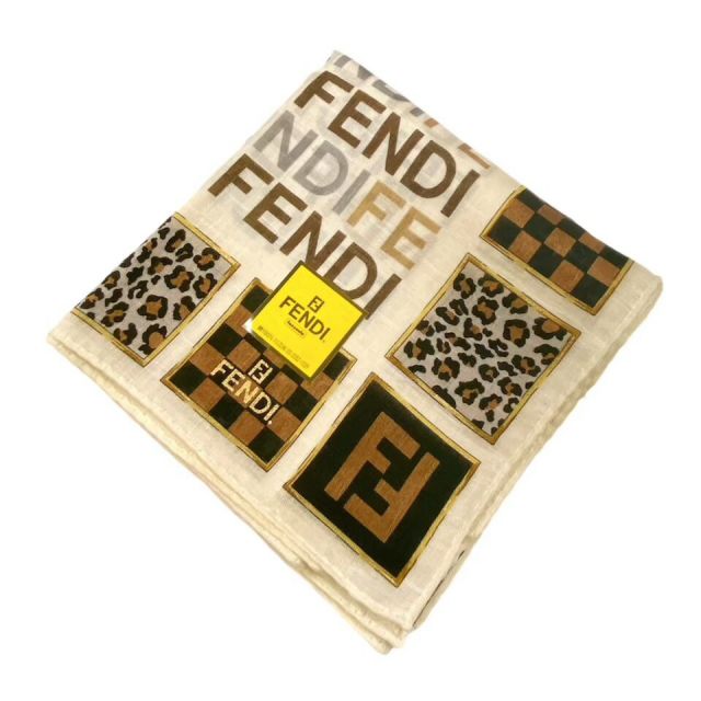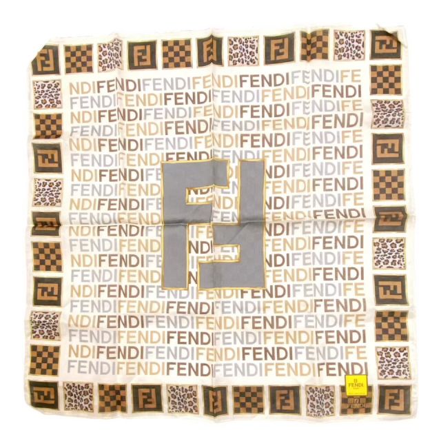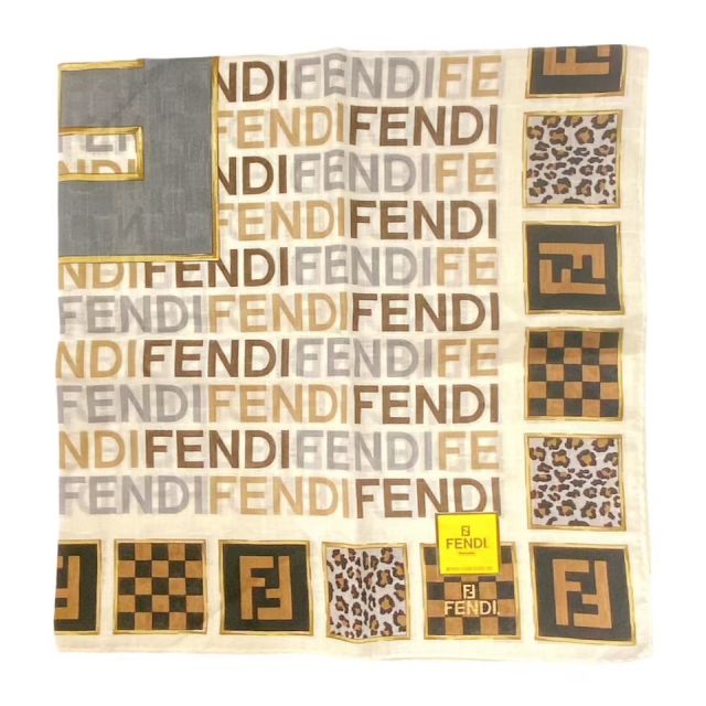 Unused Fendi Zucca Scarf Handkerchief with Logo, Brown, 100% Cotton, Women's, FENDI [Pre-owned]