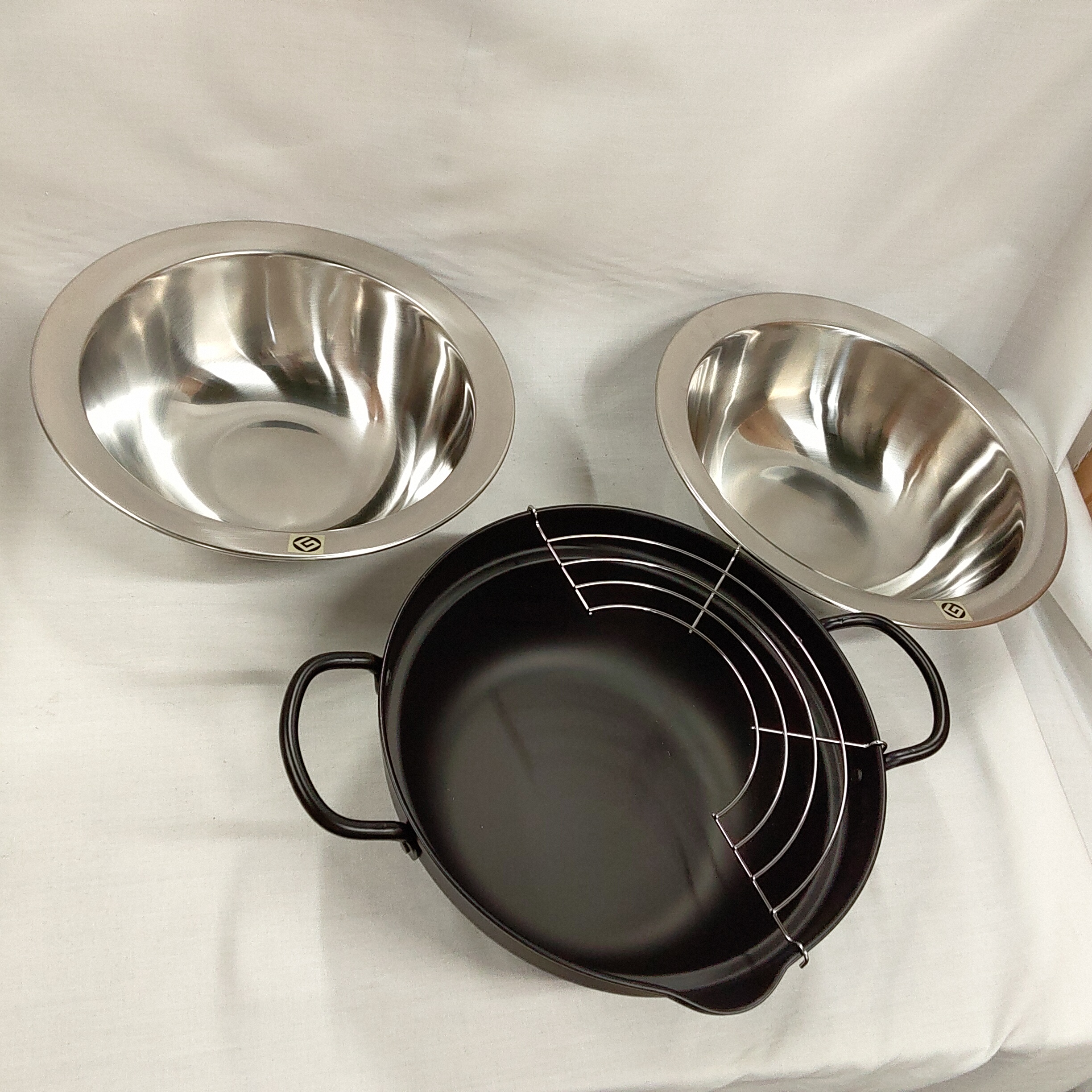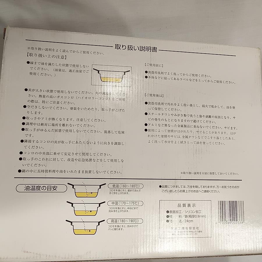 未使用 天ぷら鍋 フランジボール のセットです。シリコン加工でお手入れ簡単、ガード設計、油ハネが少ない。網付き天ぷら鍋です。フランジボールはステンレス10-18でグッドデザイン賞を受賞しています、2点のみです。野菜などを入れておくのに便利でおしゃれです。軽くチェックした所、天ぷら鍋の底に網が当たって出来た様なキズを発見しました 。長期保管によりスレ、キズ等、経年劣化しています。天ぷら鍋の箱をなしにすると国内送料1220円、有りだと1520円になります。(無しの場合フランジボールの箱に重ねて詰めます)
