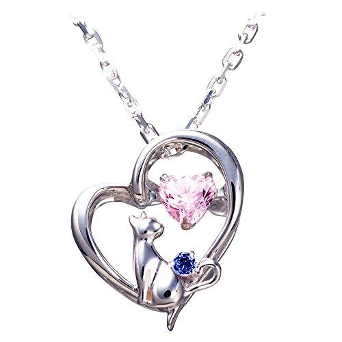 お好みの誕生石が選べる、今大人気のレディース用、ネコモチーフネックレス。キュートなネコとキュートなハートの相性はバツグン!立体的な構造になっているため、正面からも斜めから見ても胸元を際立立てます。ロジウム加工が施されているので、変色しづらい仕様となっております。