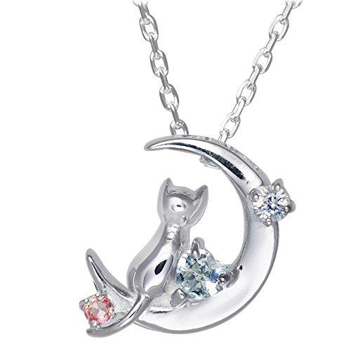 お好みの誕生石が選べる、今大人気のレディース用、ネコモチーフネックレス。キュートなネコと神秘的な三日月の相性はバツグン!正面からも斜めから見ても胸元を際立立てます。シリーズ累計売上本数も20,000本を超えた人気のレディースネックレス。ランキングにも多数入賞!自分へのご褒美にも大切な方へのプレゼントにも大変喜ばれる商品です。本体 縦×横×厚み(mm) :約12.9×約10×約3.1素材:シルバー/ホワイトサファイア(2.0mmx1)/アクアマリン ハートカット(3mm)/誕生石(1.5mm)重量(g):約2.2 チェーン :シルバーカットアズキチェーン 約40cm