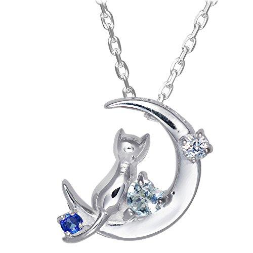 お好みの誕生石が選べる、今大人気のレディース用、ネコモチーフネックレス。キュートなネコと神秘的な三日月の相性はバツグン!正面からも斜めから見ても胸元を際立立てます。シリーズ累計売上本数も20,000本を超えた人気のレディースネックレス。ランキングにも多数入賞!自分へのご褒美にも大切な方へのプレゼントにも大変喜ばれる商品です。本体 縦×横×厚み(mm) :約12.9×約10×約3.1素材:シルバー/ホワイトサファイア(2.0mmx1)/アクアマリン ハートカット(3mm)/誕生石(1.5mm)重量(g):約2.2 チェーン :シルバーカットアズキチェーン 約40cm