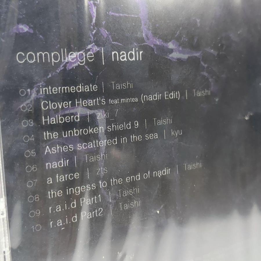 【トラックリスト】intermediate作曲: TaishiClover Heart's feat.mintea (Nadir Edit)歌: mintea 編曲: TaishiHalberd編曲: ziki_7the unbroken shield 9編曲: TaishiAshes scattered in the sea作曲: Taishi 編曲: kyunadir作曲: Taishia farce編曲: ZTSthe ingess to the end of nadir作曲: Taishi 編曲: Taishir.a.i.d Part1編曲: Taishir.a.i.d Part2編曲: Taishi