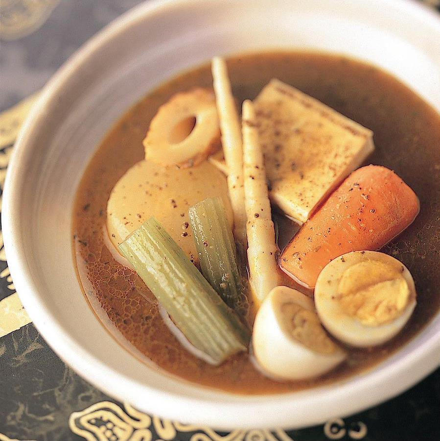焦がしバジルが香るこだわりのスープ。身近な素材を加えるだけで、ご家庭でも本格的なスープカレーがお楽しみいただけます。【湯せんで温める場合】袋のまま沸騰したお湯で3~5分温めます。【電子レンジで温める場合】必ず深めの容器に移しラップをかけ、下記の時間を目安に加熱します。500Wの場合:2分・600Wの場合:1分30秒(ご使用の電子レンジによって加熱時間が異なります)