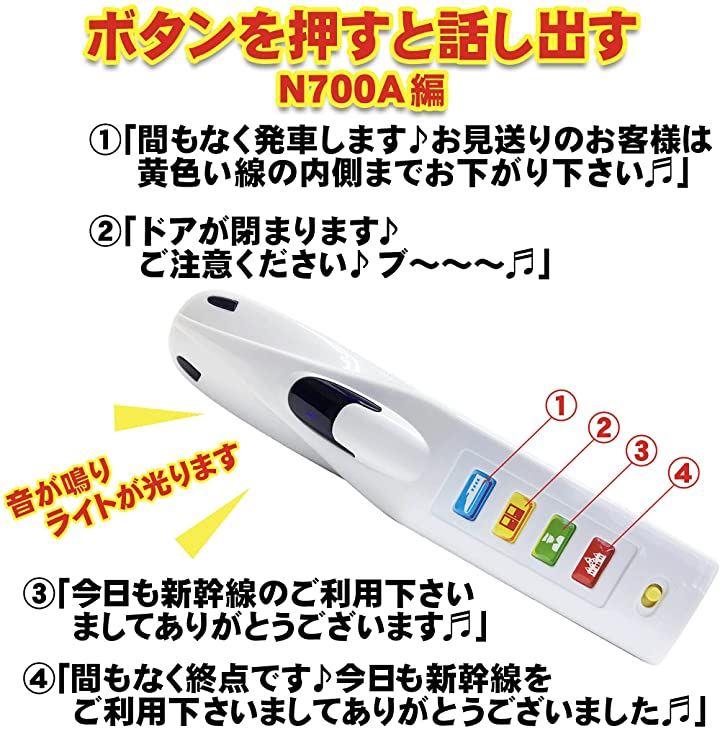 ・「人気の新幹線。」子どもだけでなく大人にも人気の新幹線ドクターイエローとN700Aがおもちゃになって登場しました。新幹線の上部にあるボタンを押すと駅のホームや車内から流れるアナウンスがリアルに流れ出します。