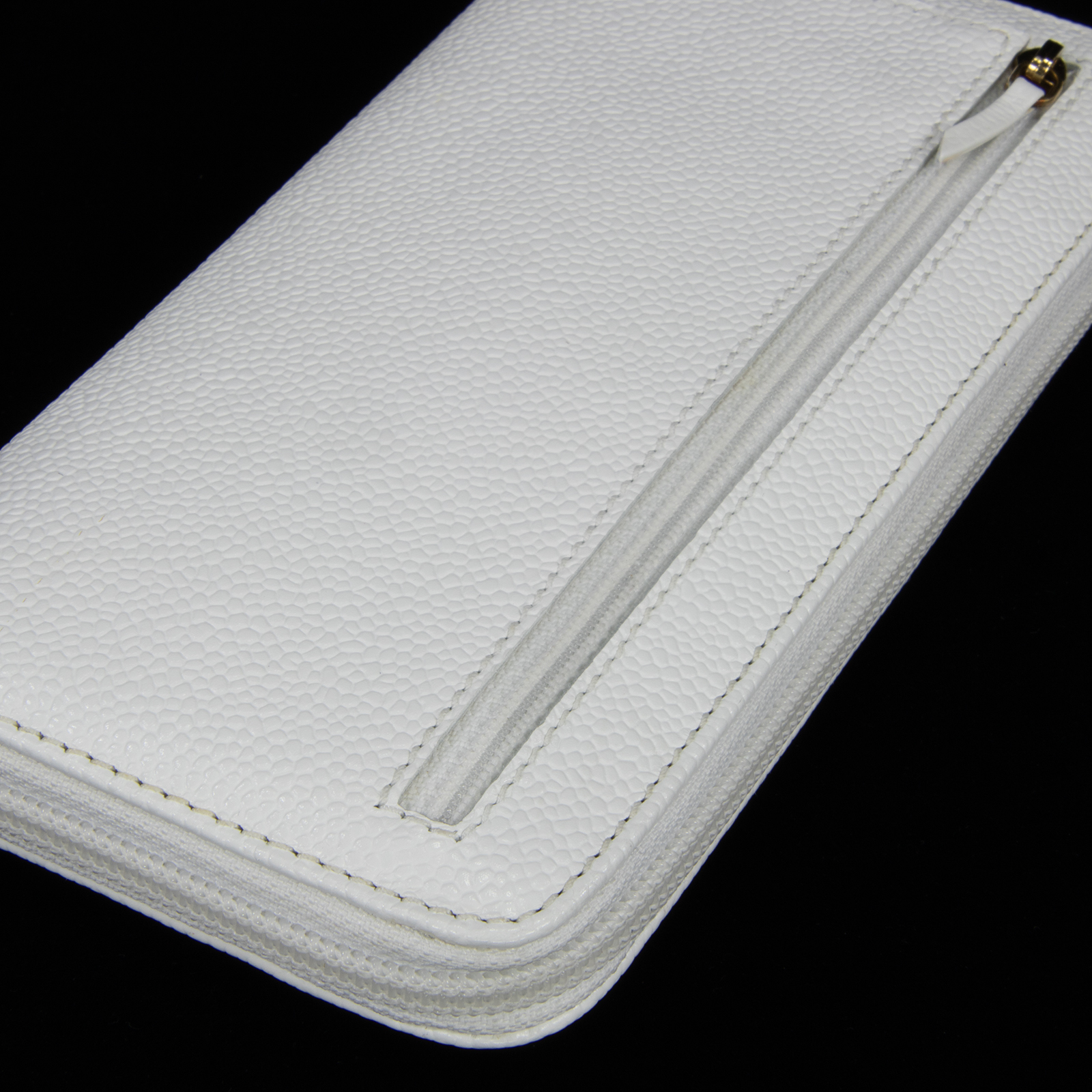 ラウンドファスナーを開きますと、中身が一目で見渡せ、カードやお札の出し入れも大変スムーズに行えます。